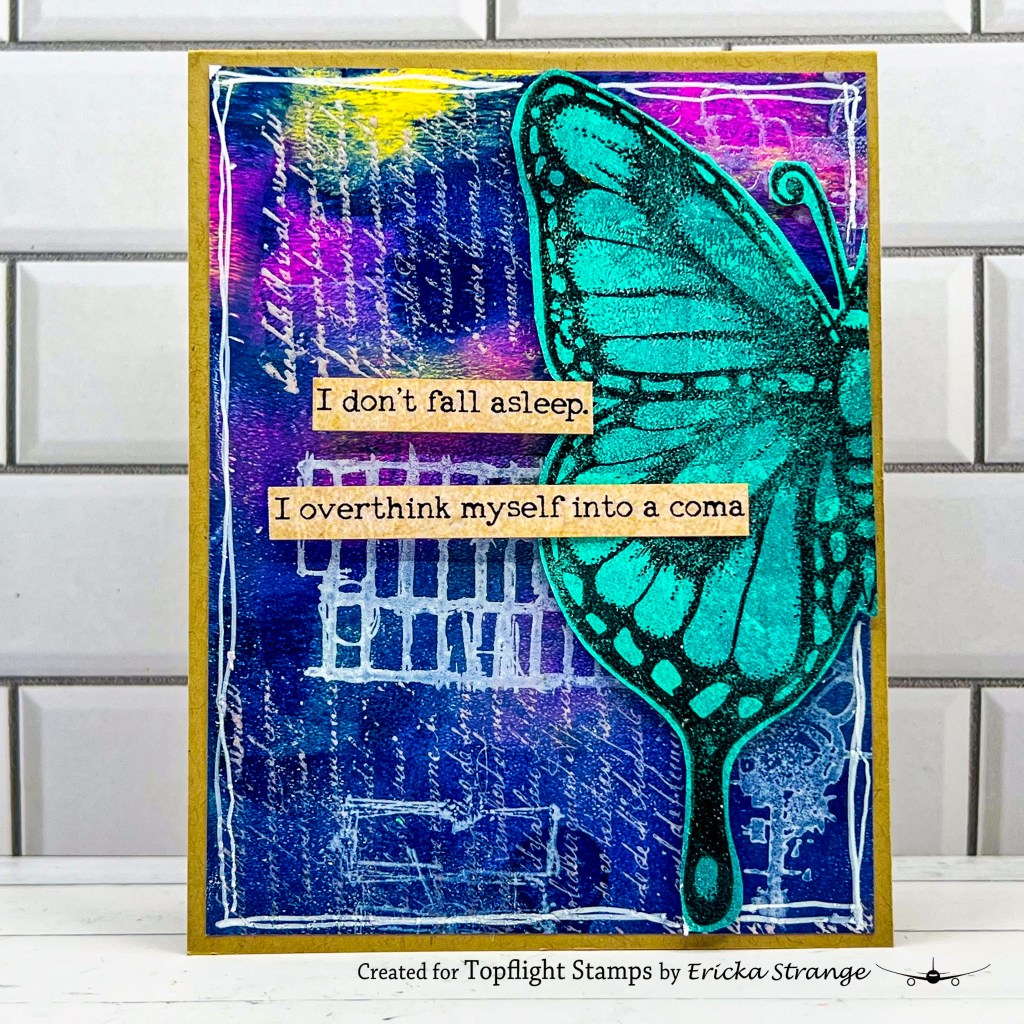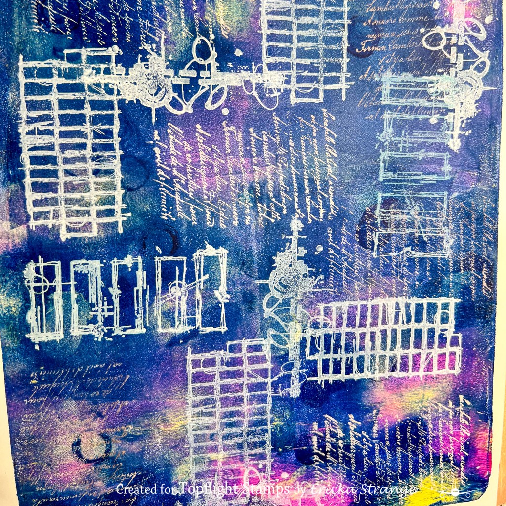 Hello creative friends! 🎨 This week at Topflight stamps we’re diving into one of my absolute favorite art styles Mixed Media! Mixed media art combines multiple mediums to create rich textures, layers, and dimension… and for today’s project, I couldn’t resist pulling out one of my gel press backgrounds from my stash.