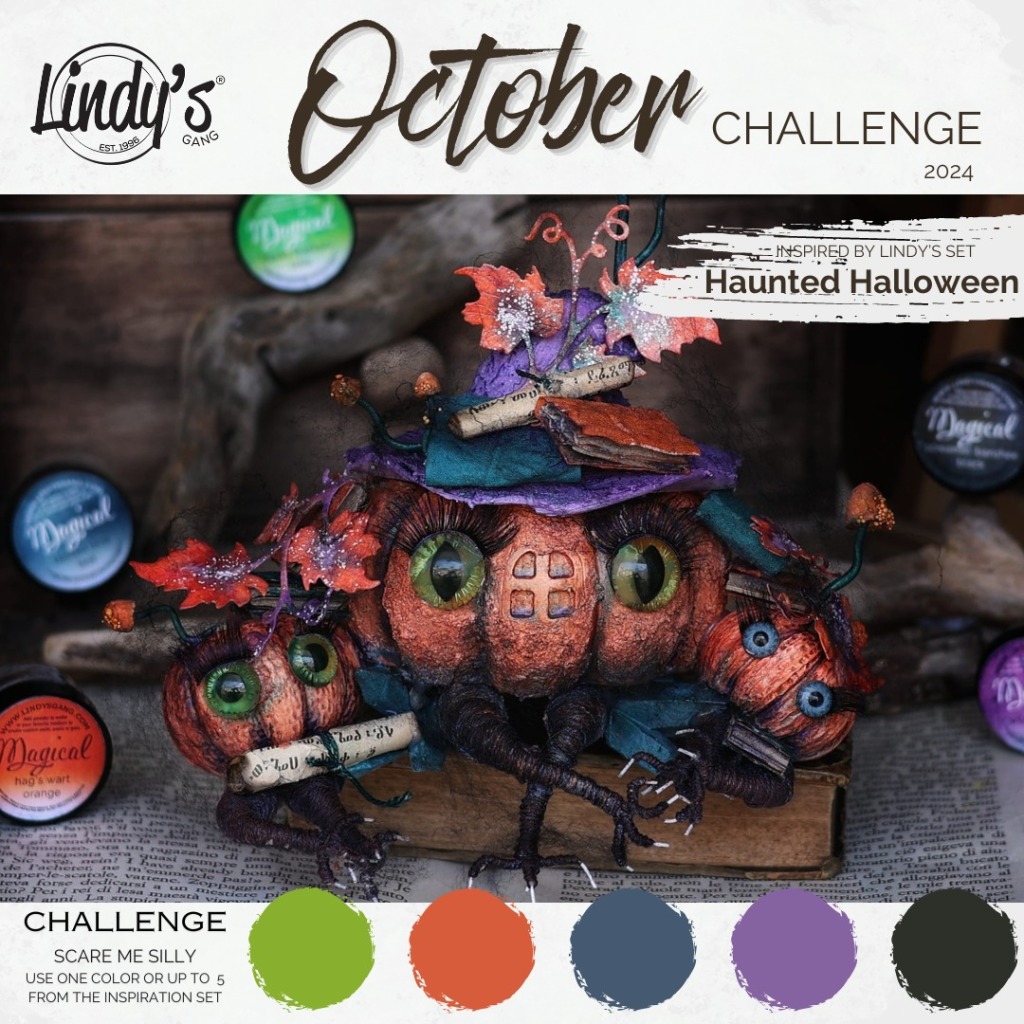 This project was a blast, layering both color and texture to bring spooky vibes to life. I hope this inspires you to dive into your Halloween stash and play along with us. And don’t forget to join the fun over at the Lindy’s Gang Facebook challenge!