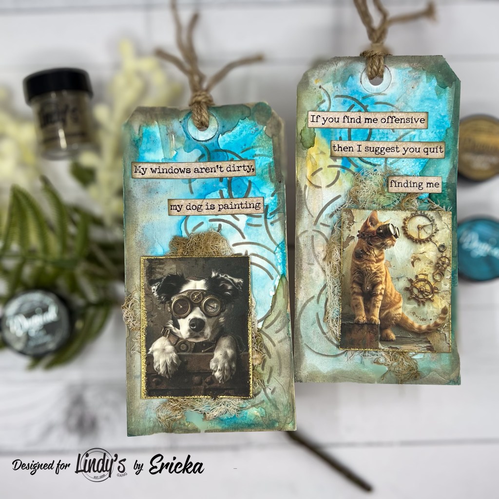 And there you have it—two steampunk-inspired mixed media tags brimming with personality and charm. I hope this project inspires you to dig into your stash and create something magical with your Lindy’s Magicals and favorite printables.